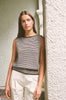 Our beloved roll-neck vest is reimagined in trans-seasonal merino stripe. The special qualities of wool mean that it is cool enough to be worn in summer as a top and warm enough to be layered in winter as a vest. A slightly cropped style designed to finish at the waist, we recommend sizing up if you prefer hip length.